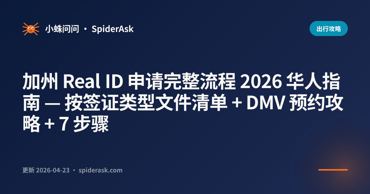加州 Real ID 申请完整流程 2026 华人指南 — 按签证类型文件清单 + DMV 预约攻略 + 7 步骤
