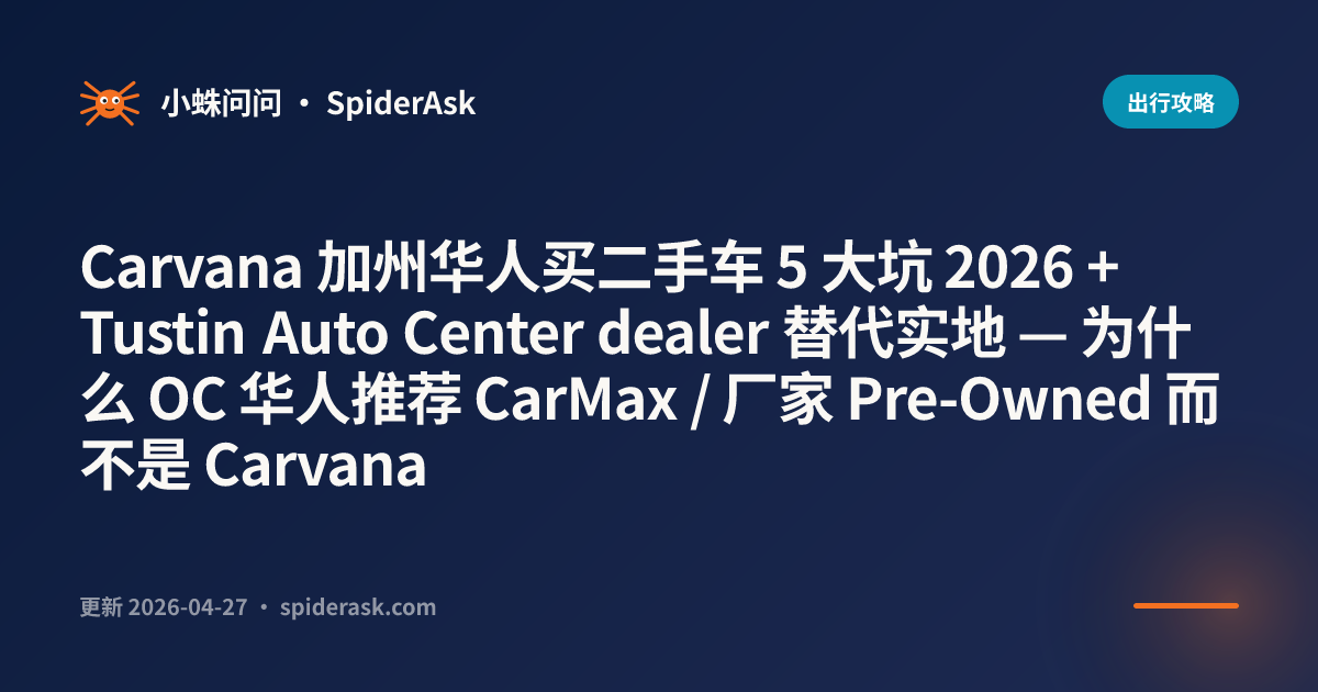 Carvana 加州华人 5 大坑 2026 + Tustin Auto Center dealer 替代