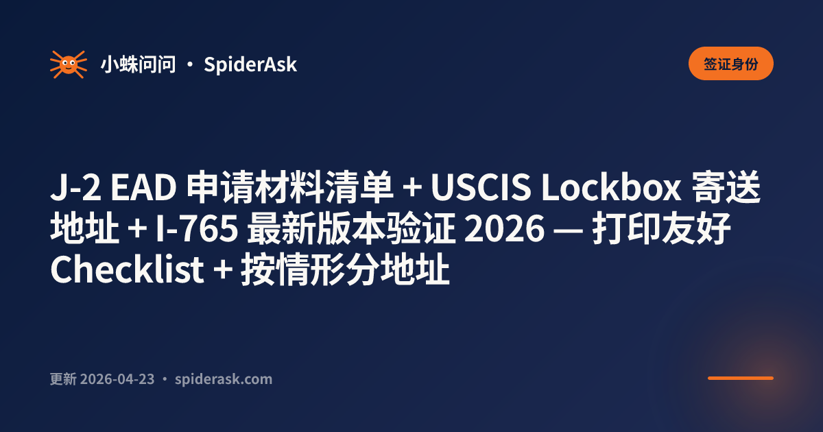 📚 本页为 J-2 EAD 申请材料 / 地址 / 版本验证 tactical 指南,不构成法律 / 移民建议。USCIS 表格 edition 和 Lockbox 地址会随时变更,任何时候以 uscis.gov/i-765 官方 "Edition Date" 和 "Where to File" 部分为准。本文给的地址 as-of 2026-04,但寄送前务必 last-minute verify。本文不替代 J-2 EAD 完整流程指南,是那篇的 tactical 补充。